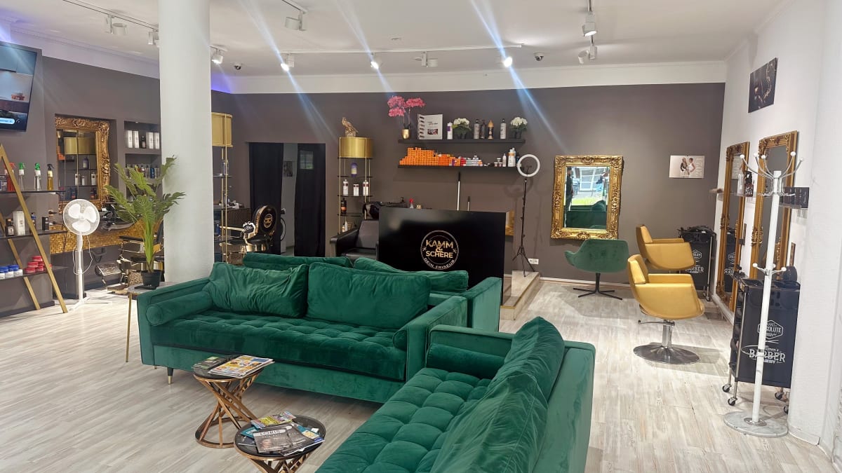 Besuchen Sie 'Kamm & Schere Norderstedt', erfahren Sie die Kunst des Herrenstylings in einer Umgebung, die Eleganz, Modernität und Komfort vereint.